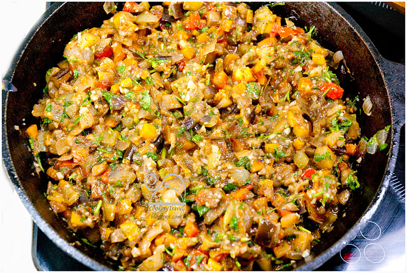 Цибулі, моркви, перцю, помідорів необхідно брати у рівній кількості, а баклажанів більше, щоб страва мала характерний баклажановий присмак.